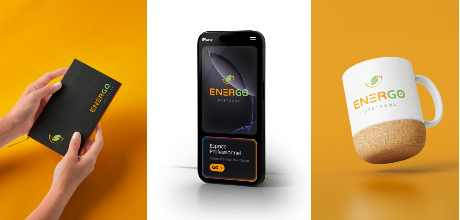 La création d’une identité visuelle forte constitue le fondement de ce projet. Du logo aux supports de communication, chaque élément graphique a été pensé pour incarner les valeurs d’EnerGo : énergie, dynamisme et engagement environnemental.